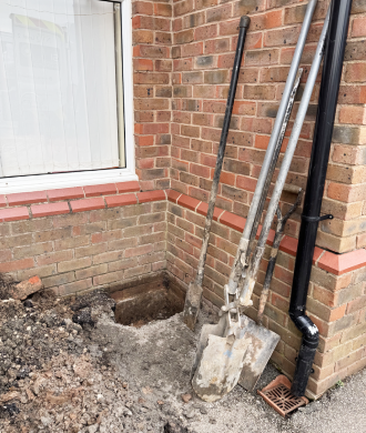 Breaking out any hard standing surfaces, or digging in softer landscaped surfaces, our engineer will excavate down the external wall of the building until the foundation is reached, then exposing the full foundation the building is sat on, making an accurate sketch with dimensions, full photographic evidence, and recording strata changes, the results are presented to the client.